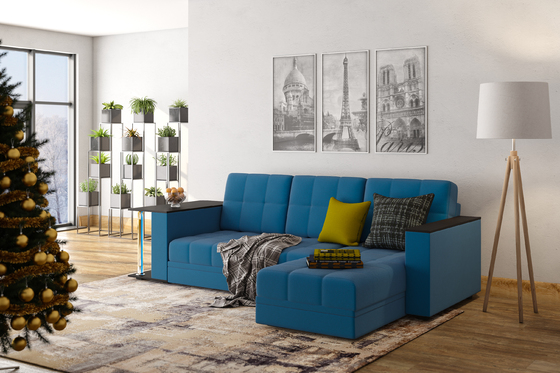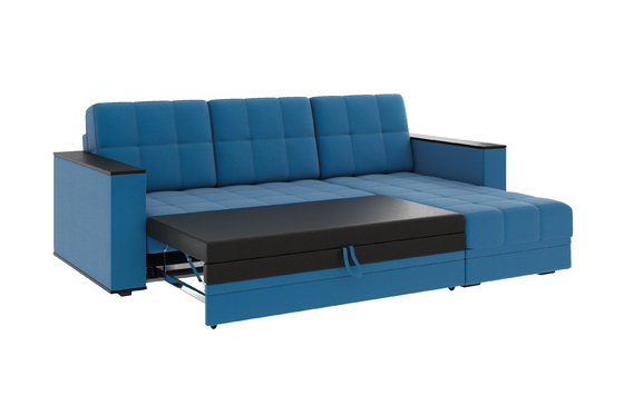 Диван-кровать угловой Тэдди 1504 композиция 3, букле Pique 009 синий, модульная система, сборка на любую сторону
