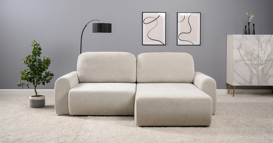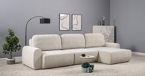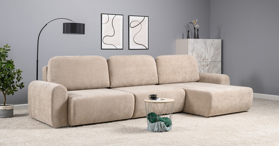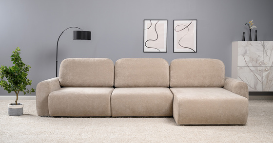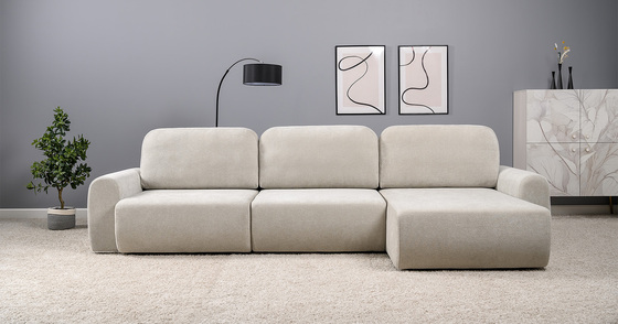 Диван-кровать угловой Тэдди 1502 композиция 3, букле Pique 006 бежевый, модульная система, сборка на любую сторону