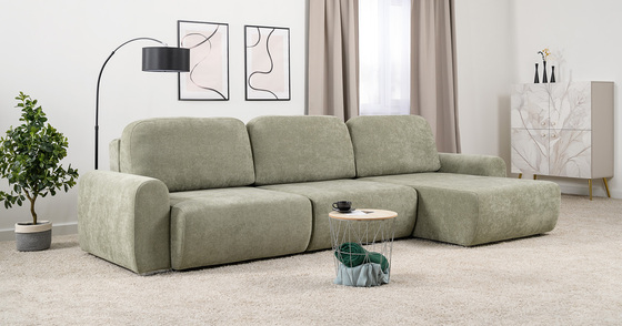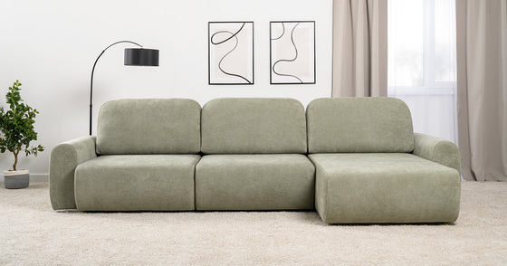 Диван-кровать угловой Тэдди 1503 композиция 2, букле Pique 007 оливковый, модульная система, сборка на любую сторону