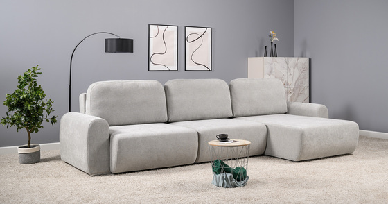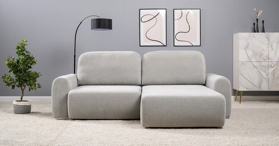 Диван-кровать угловой Тэдди 1506 композиция 2, букле Pique 011 серый, модульная система, сборка на любую сторону
