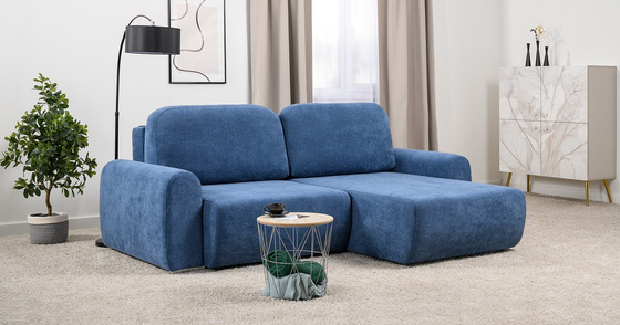 Диван-кровать угловой Тэдди 1504 композиция 2, букле Pique 009 синий, модульная система, сборка на любую сторону