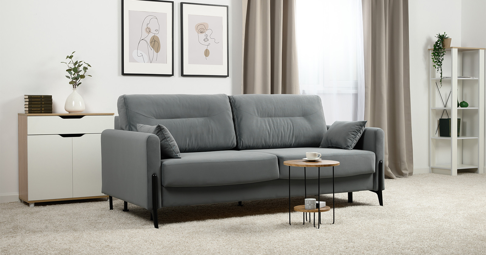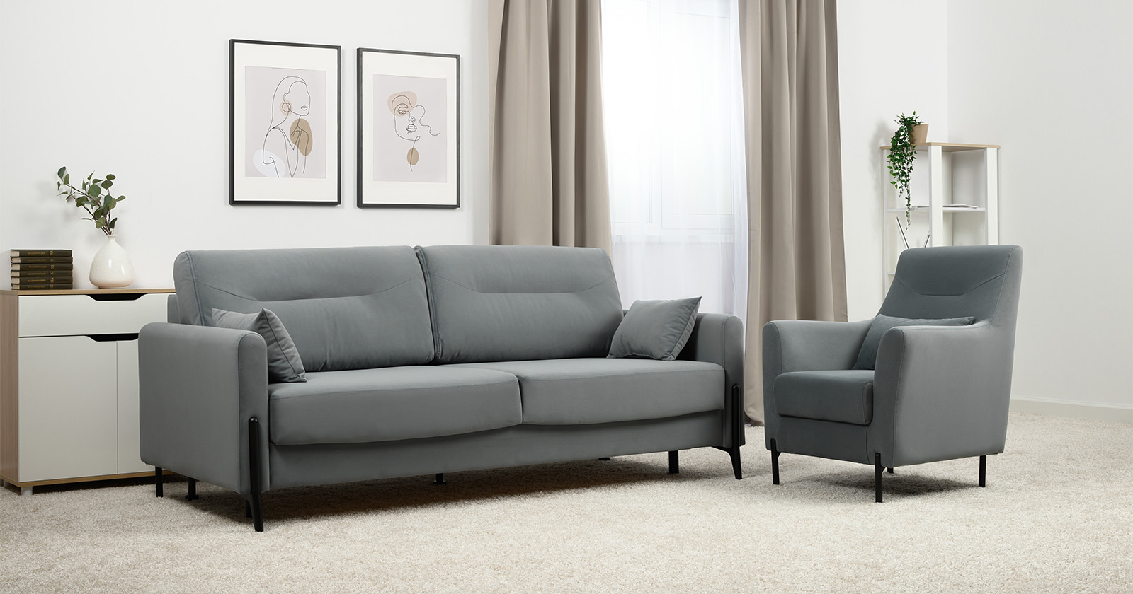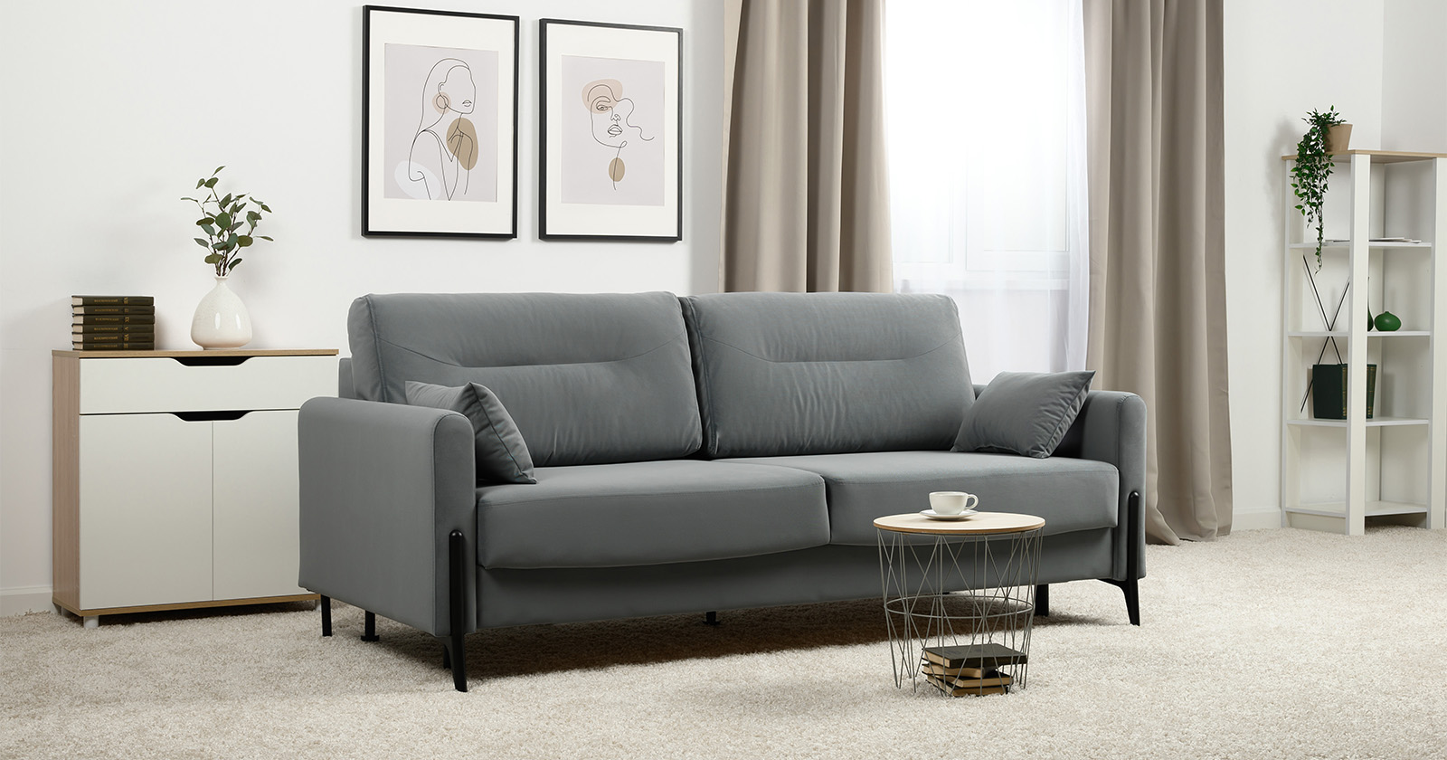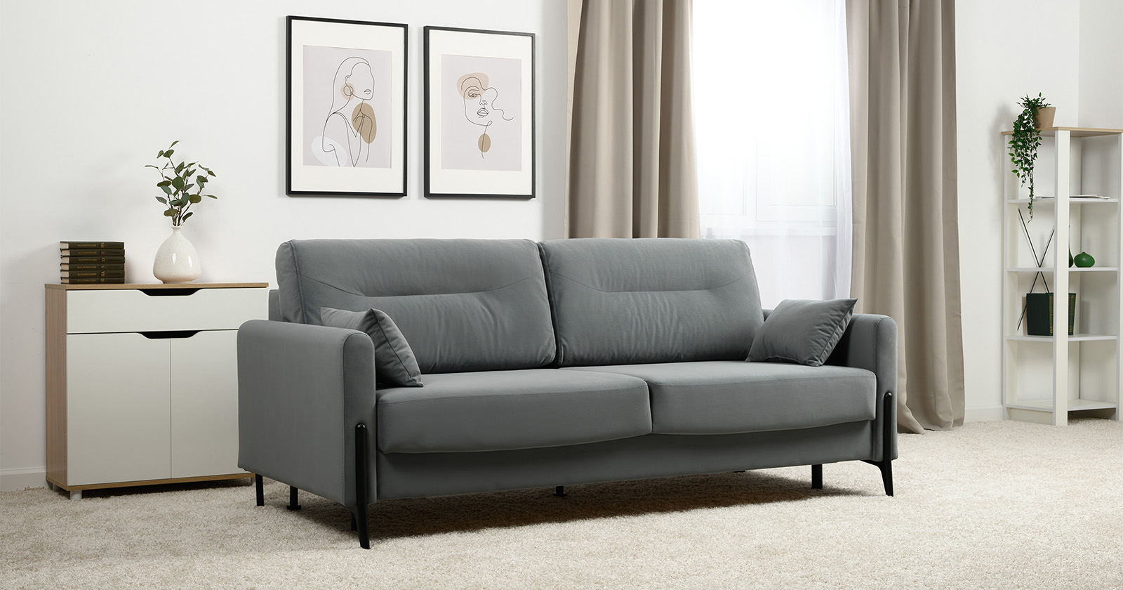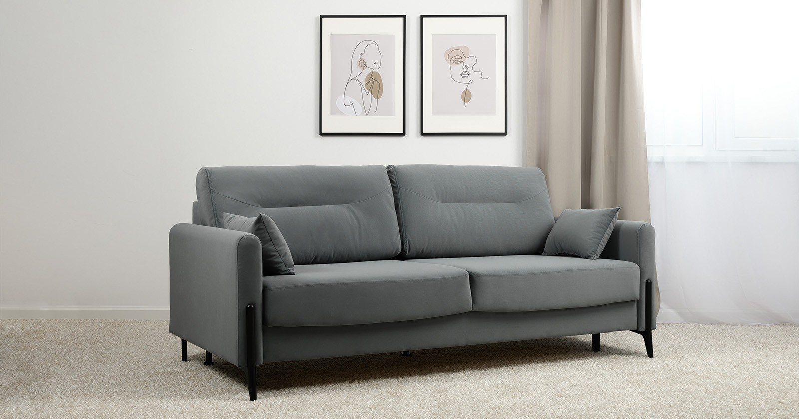 Барселона - современный диван, стиль которого удачно подчеркнут элегантными металлическими опорами.