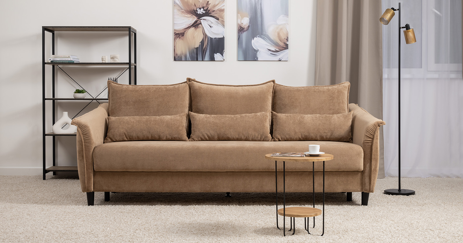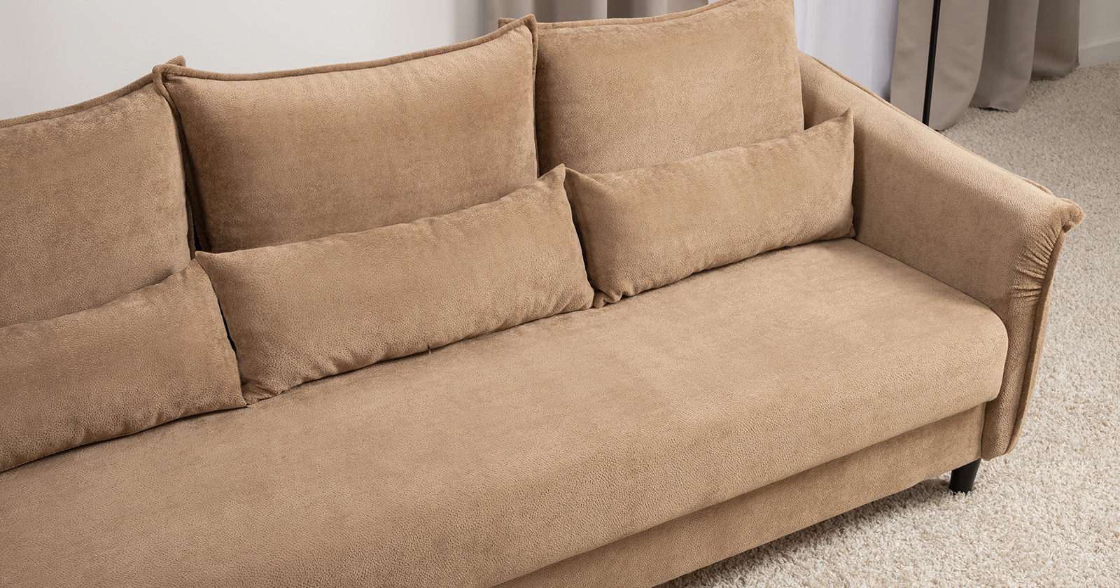Изогнутые подлокотники в форме лепестков придают коллекции изысканный и элегантный вид, а дополнительные декоративные подушки обеспечат поддержку тела и помогут уютно устроиться на диване. В наполнении дивана используется высокоэластичная пена, которая адаптируется к форме вашего тела и гаранитует максимальный комфорт во время отдыха.