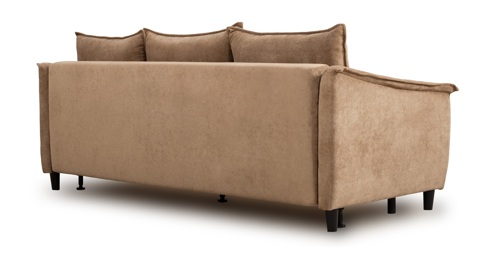 Спинка с тремя приспинными подушками. Две подушки трапецивидной формы, центральная квадратной формы на молнии, по трем сторонам которых проложена отделочная строчка на 1,2 см. По контуру боковин проложен декоративный кант на 1,2 см из основной ткани. Кант проходит по центру передней части боковины, а по внутренней верхней части сборка.