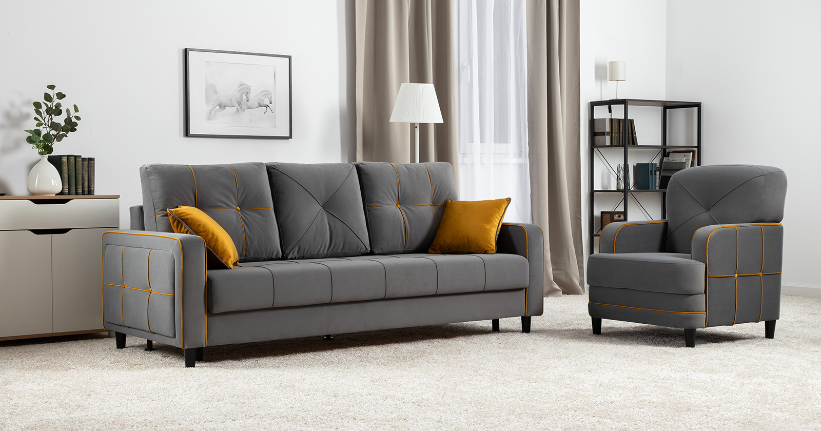 выполняется в тканях: Irida 21 (серый), Эвита умбер (горчичный)