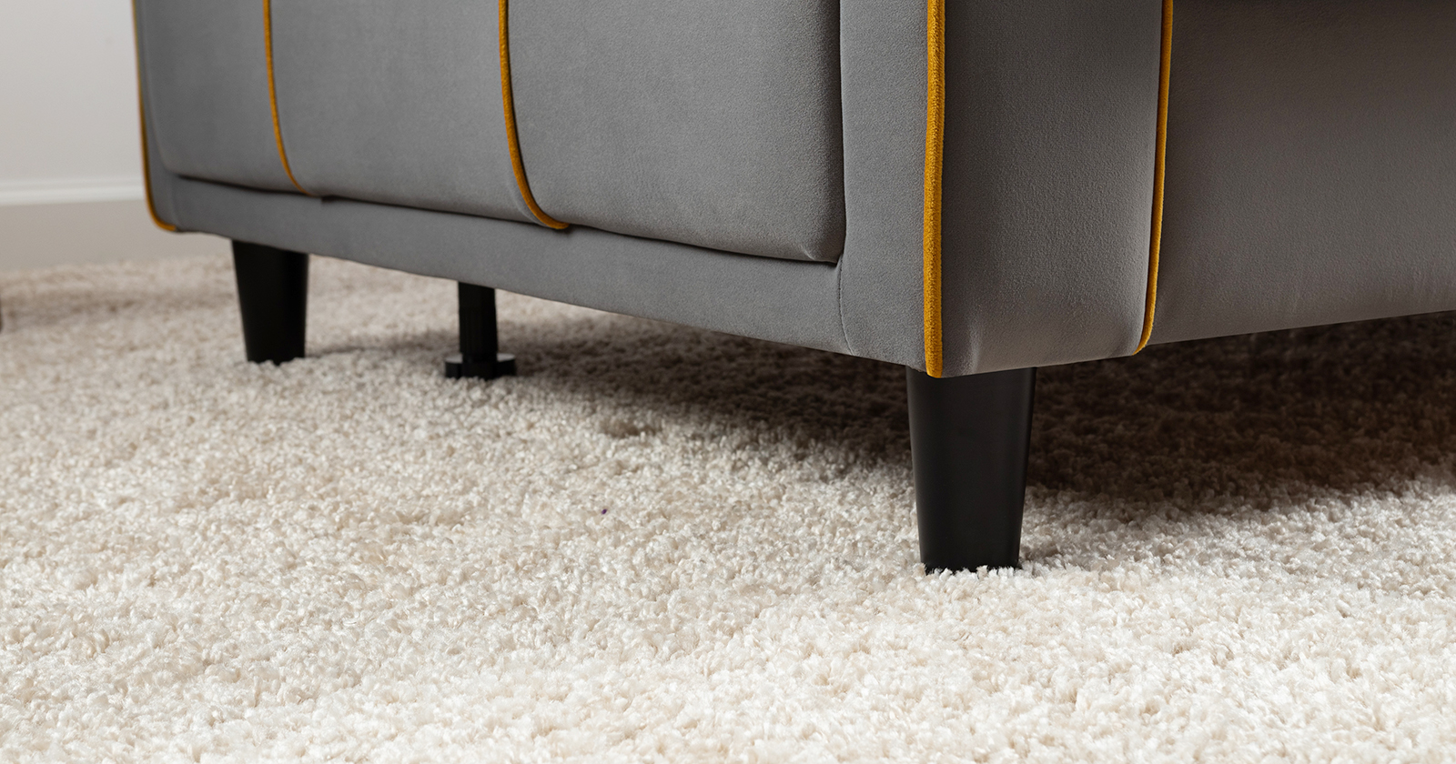 Декоративные канты на подушках и вставке подлокотников. Пуговицы в местах пересечения кантов на подушке и вставке подлокотников. По торцам подлокотников и думках контрастный декоративный кант. Защипы на сиденье и средней большой подушке.