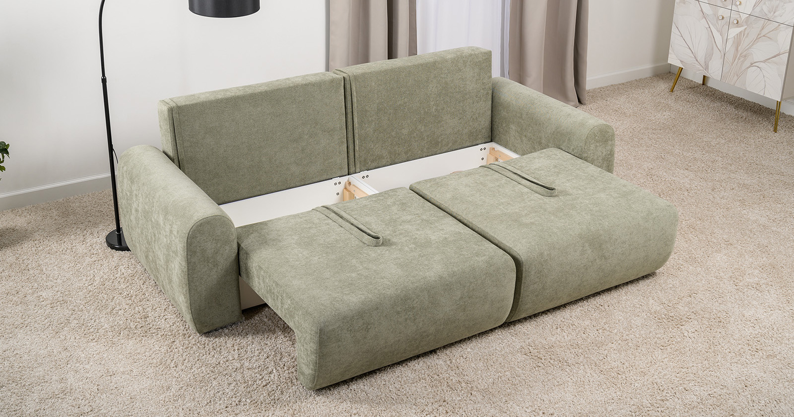 Диван-кровать прямой Тэдди 1503 композиция 1, букле Pique 007 оливковый, модульная система