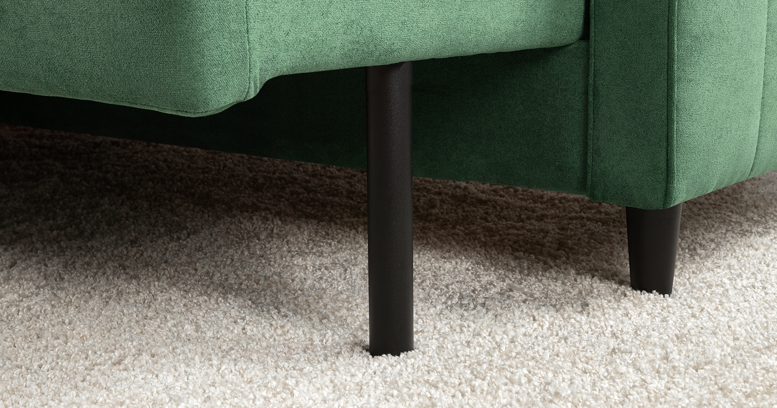 Модель с универсальным углом подойдёт любителям часто менять обстановку. Устойчивые конесообразные деревянные ножки придают дивану легкость и изящество. Для завершения интерьера можно заказать кресло Арно.