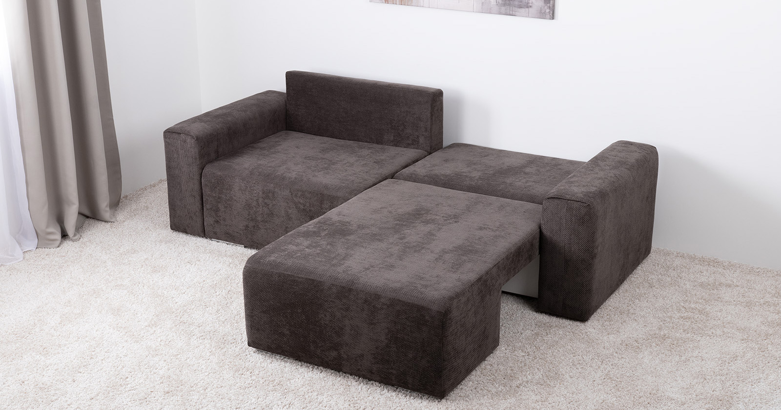 Диван-кровать угловой Оксфорд 711 композиция 1, шенилл Muza 06 темно-коричневый, модульная система, сборка на любую сторону