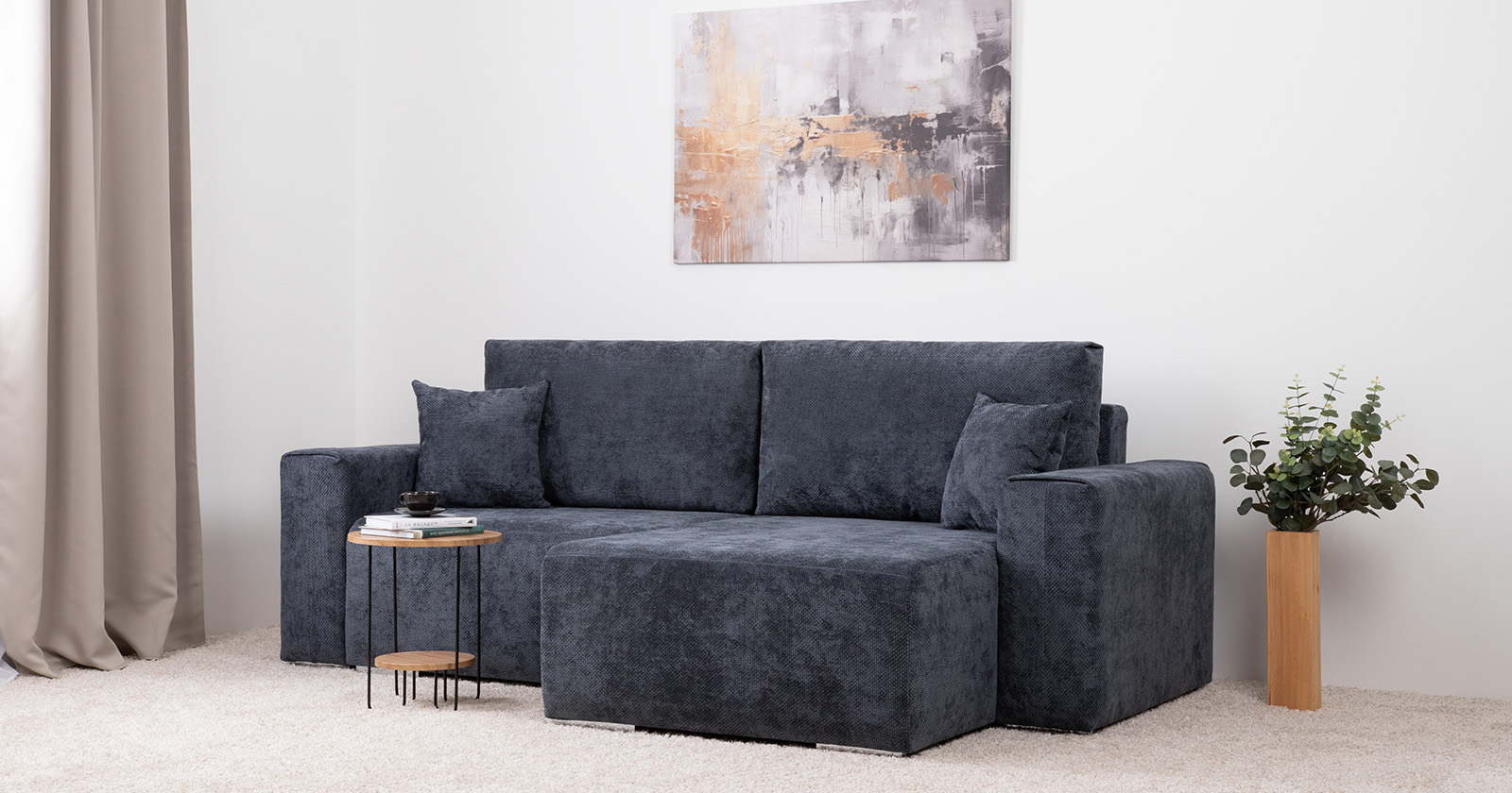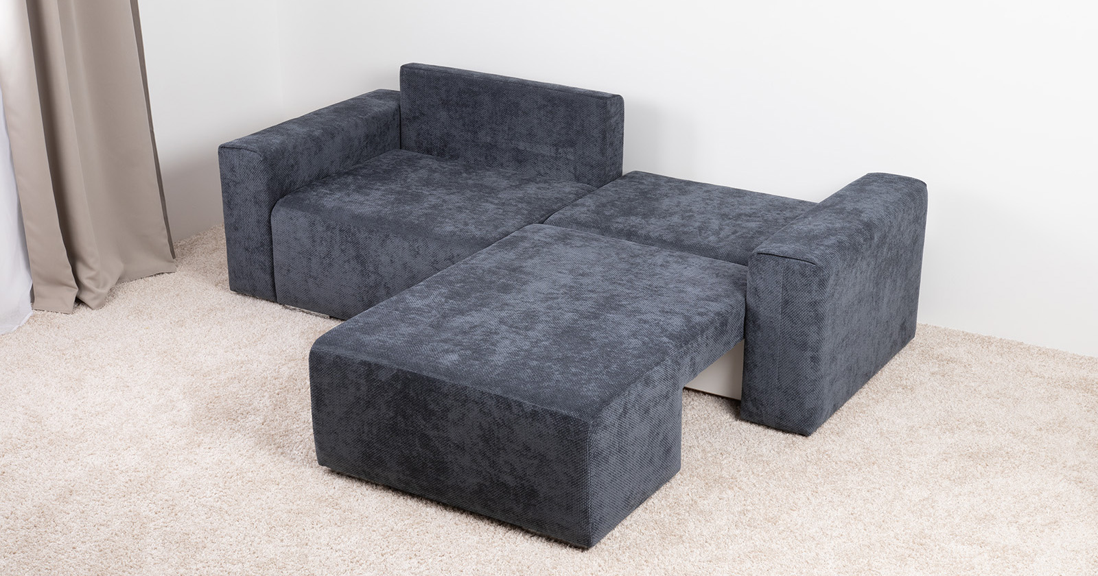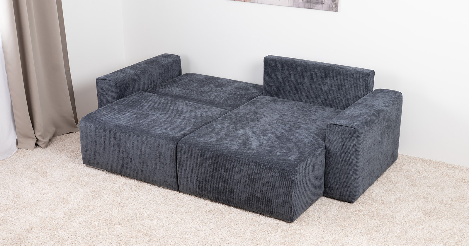 Диван-кровать угловой Оксфорд 713 композиция 1, шенилл MUZA 09 темно-синий, модульная система, сборка на любую сторону