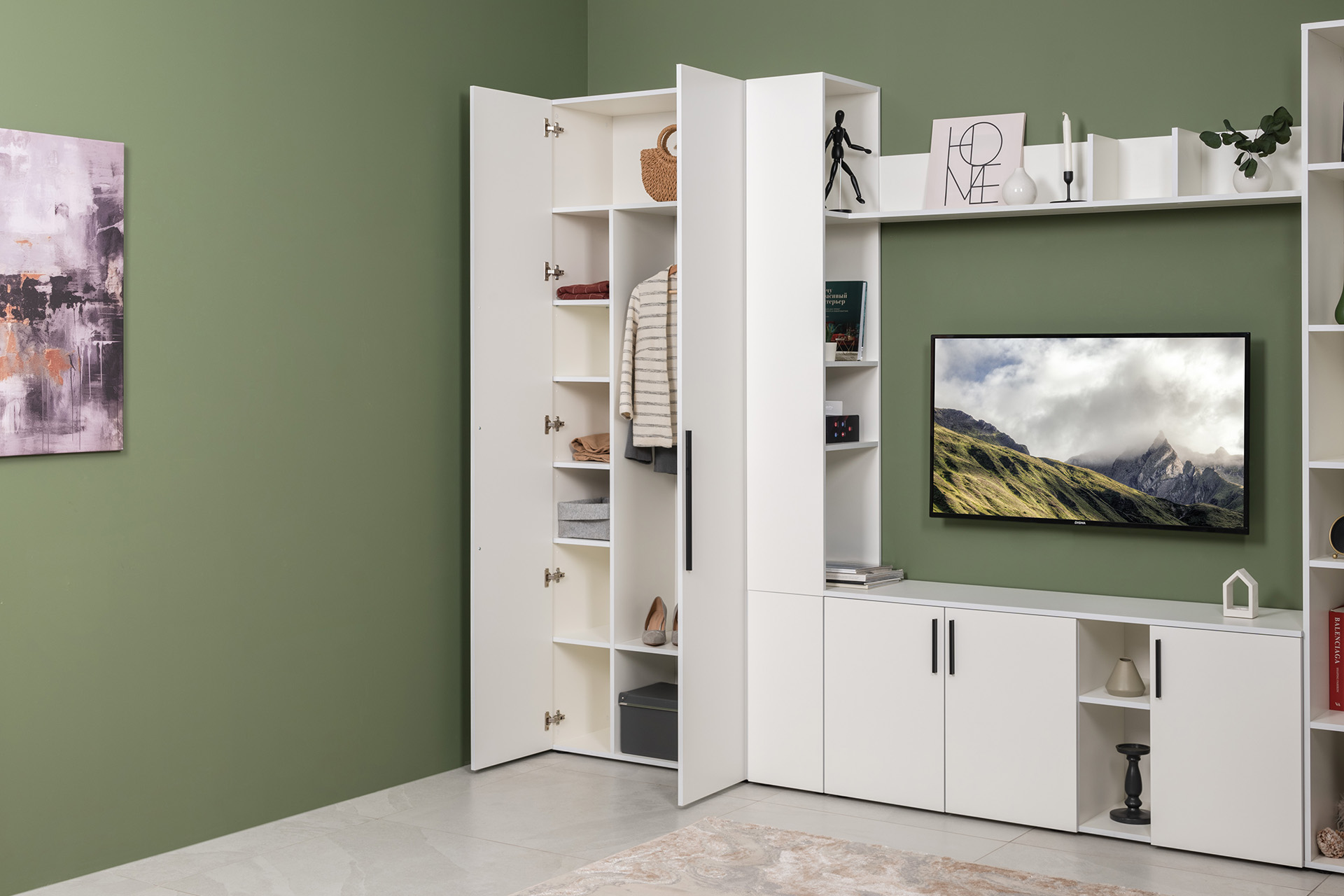 Гостиная Эйр композиция 1 белый PE шагрень, собирается на любую сторону