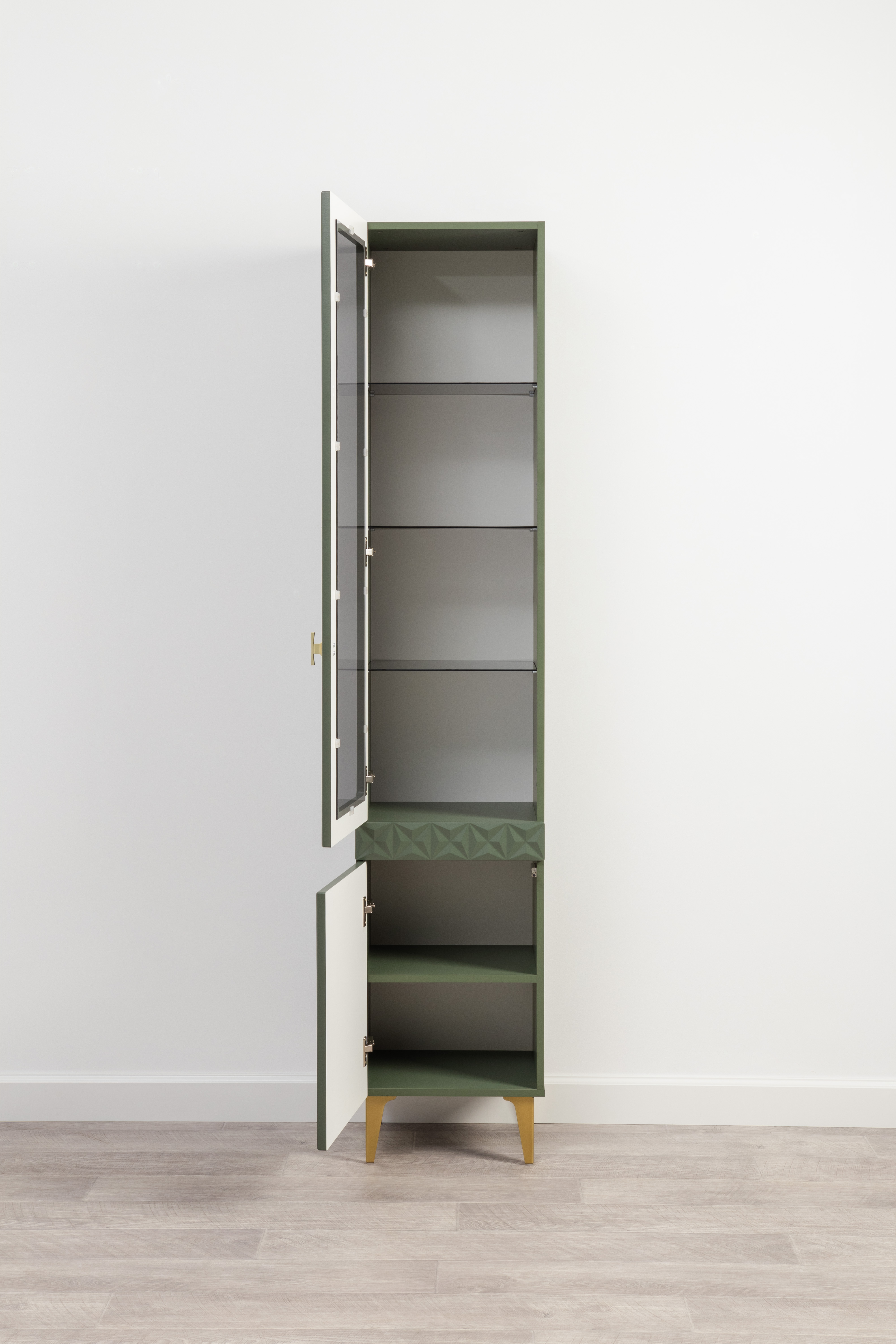 Шкаф-витрина Марион 16.397.02 дымчатый зеленый K521, олива шагрень AG 1050 ПВХ