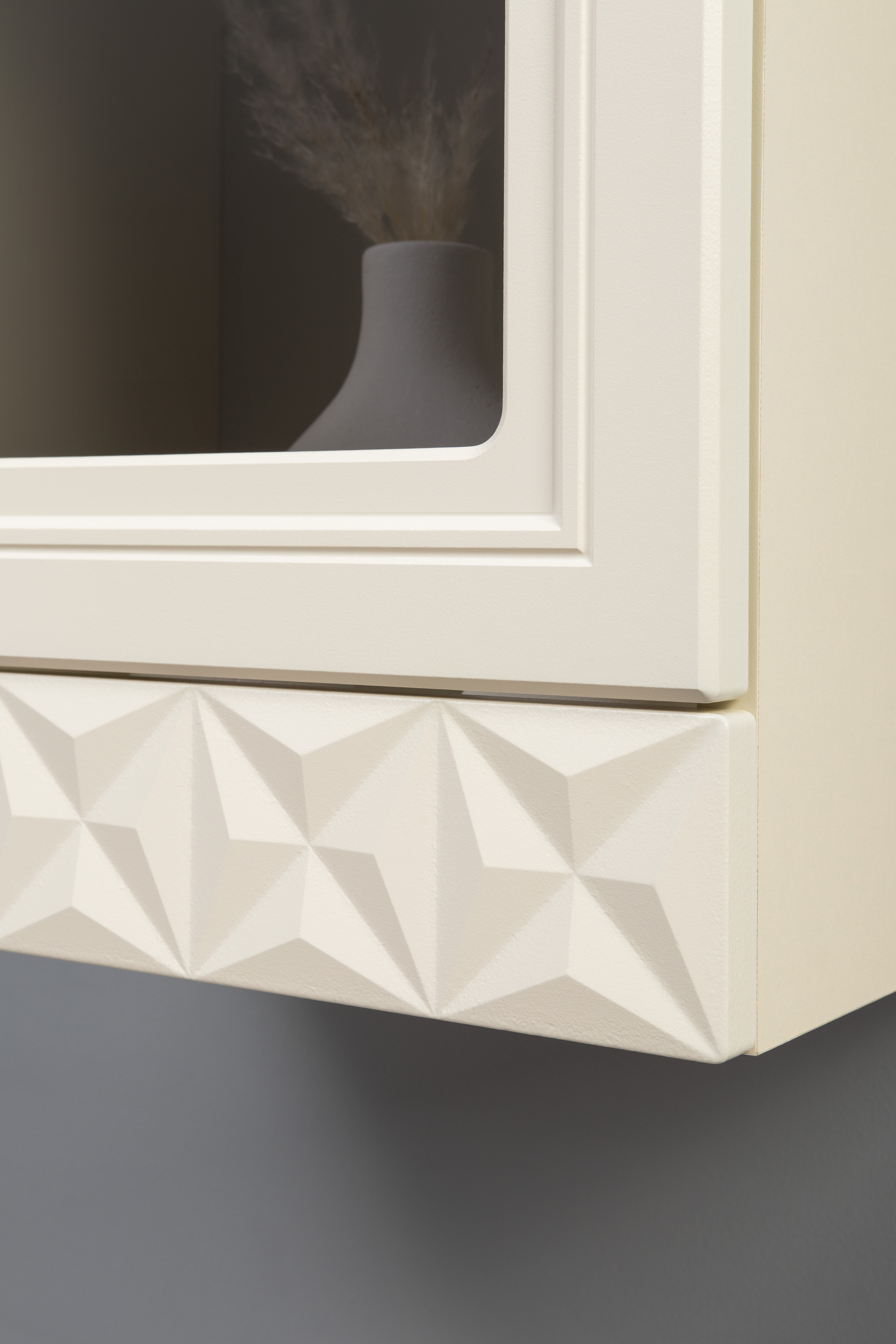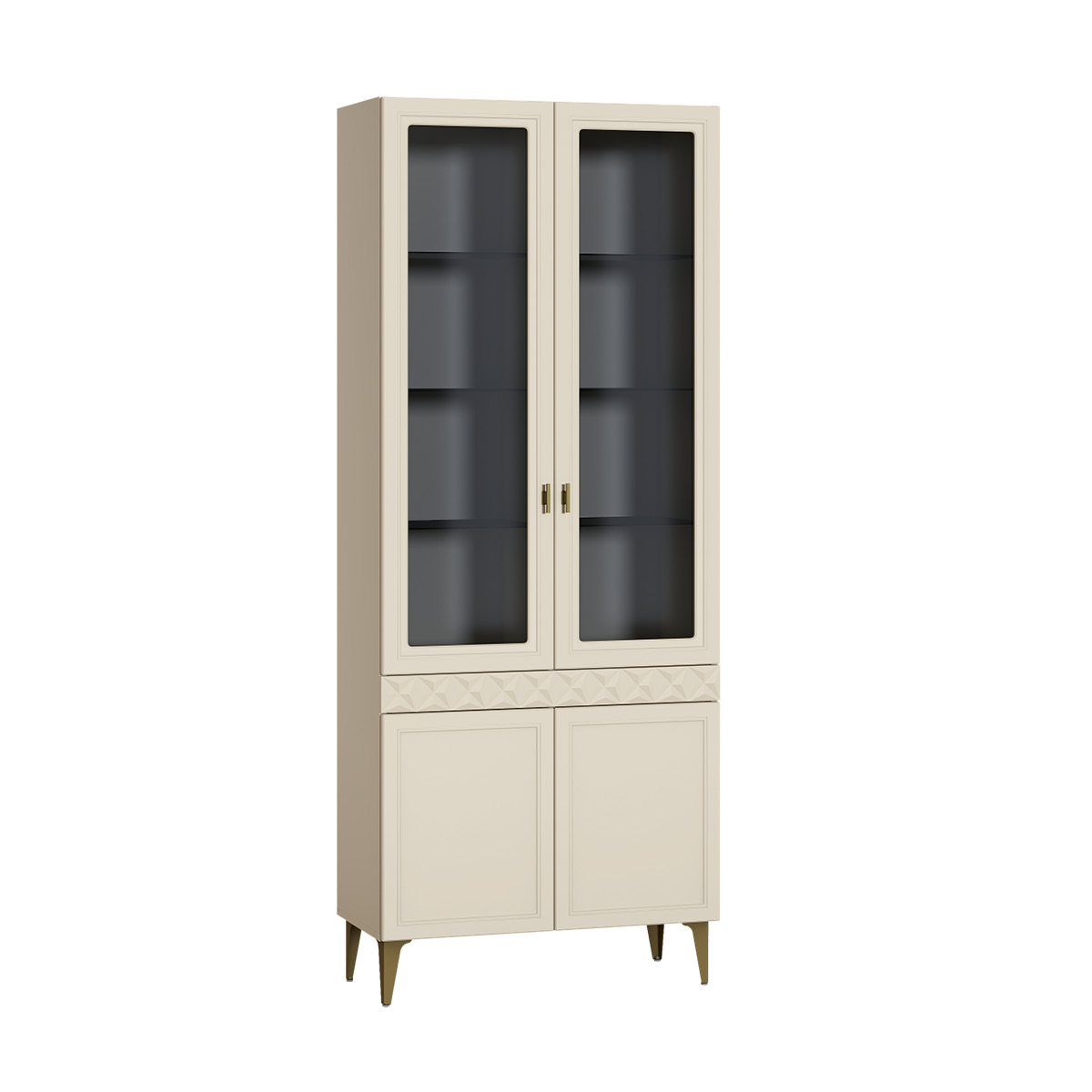 Шкаф-витрина Марион 16.397.01 слоновая кость С341 PE, слоновая кость 6898 ПВХ (собирается на любую сторону)