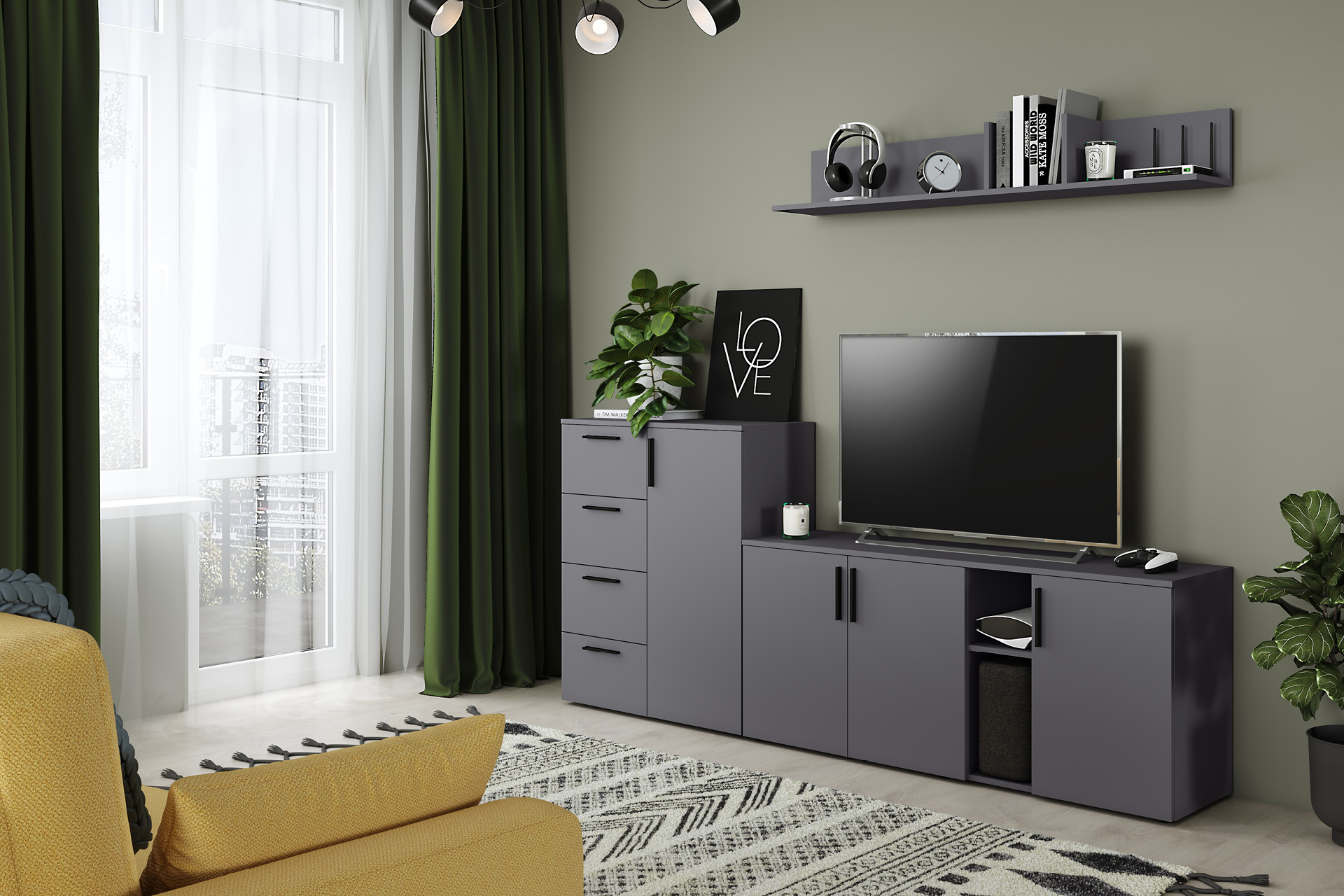 Эйр – модульная коллекция для гостиной. Современный дизайн подчеркнут геометричными формами.