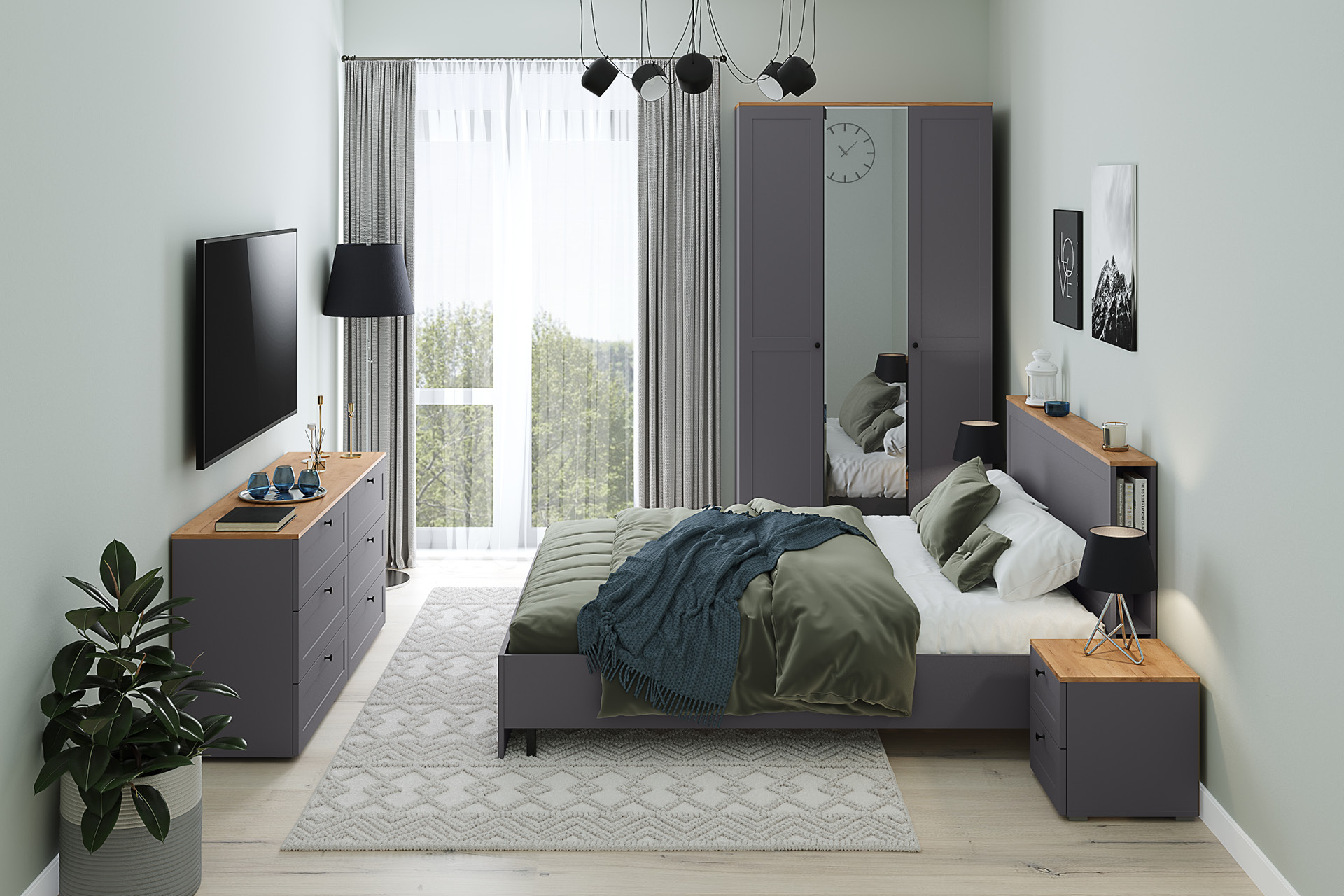 Шкаф для одежды Остин 13.224 серый графит, дуб вотан, серый графит ПВХ