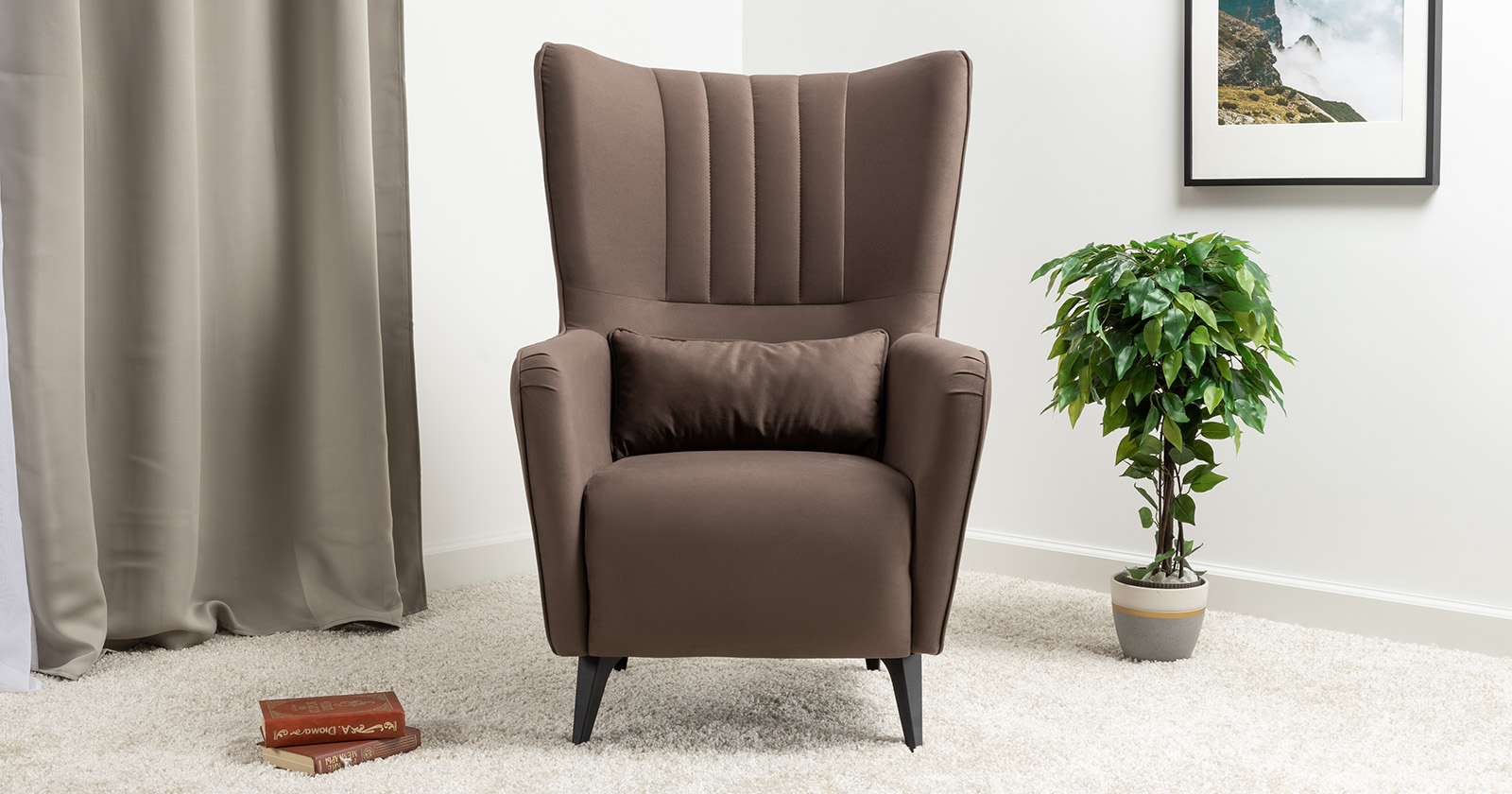 Классическое каминное кресло в современном прочтении. Элегантное кресло дополнит диван Ноэль или поможет организовать уголок для отдыха в гостиной, спальне или на лоджии. Высокая спинка с поясничной подушкой равномерно распределяет нагрузку на позвоночник, что позволяет качественно отдохнуть и расслабиться.