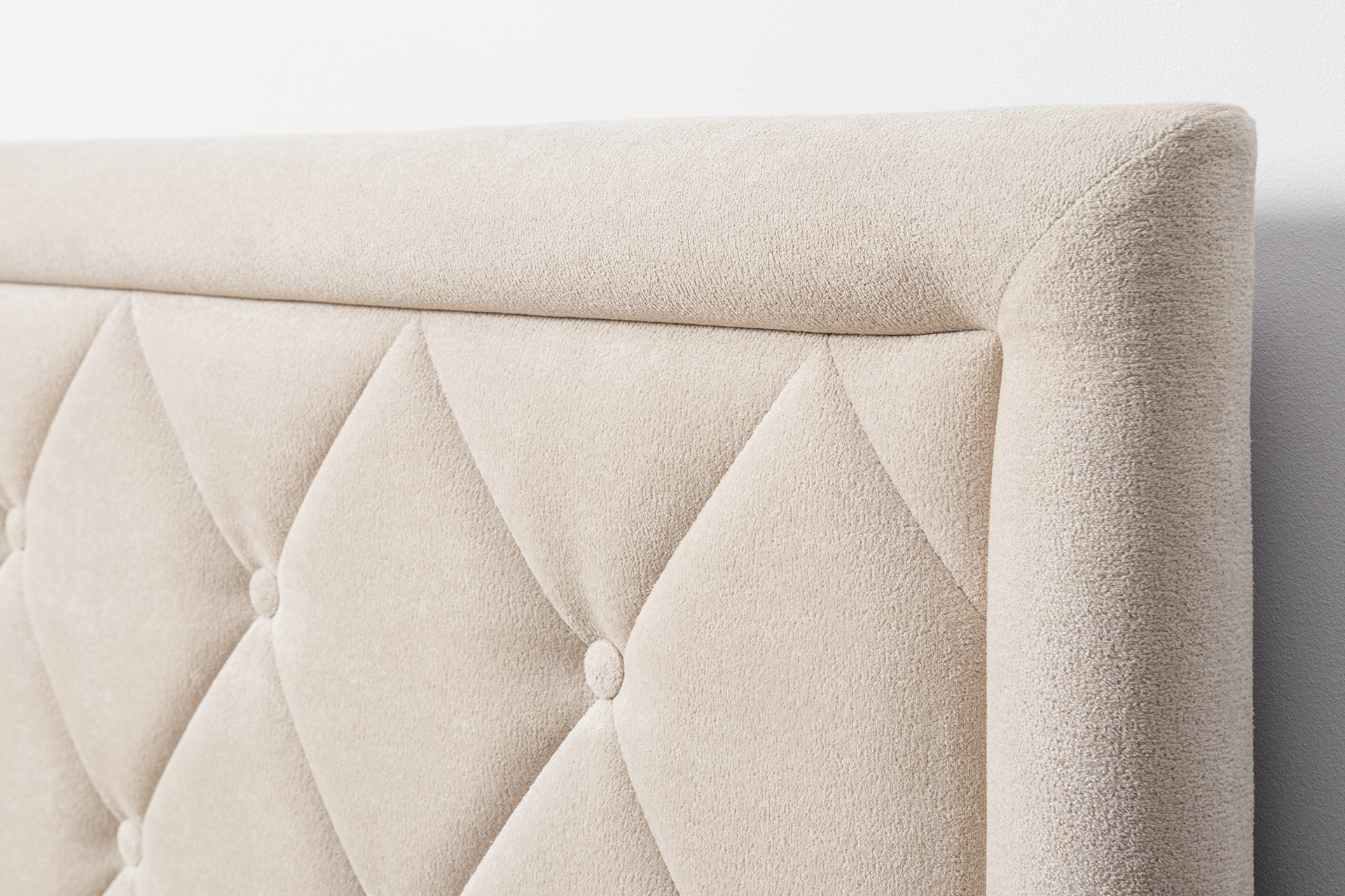Кровать Марион — это идеальное сочетание стиля и комфорта. Элегантное изголовье оформлено стежкой в виде классической каретной стяжки, украшенной декоративными пуговицами, что придаёт изделию выразительный и утончённый вид. По всему периметру кровати проходит аккуратный валик, подчеркивающий геометрию и завершённость формы.