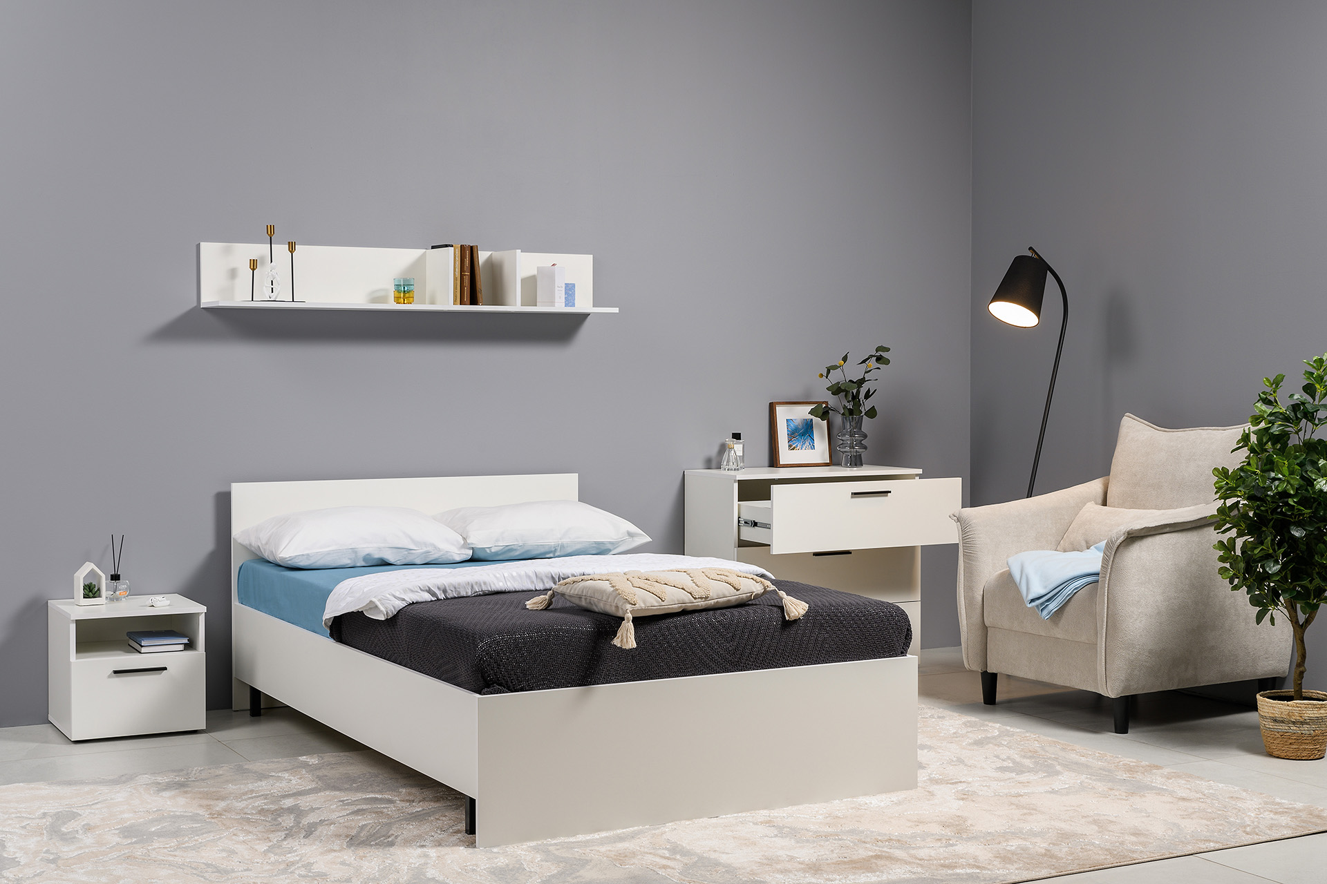 Спальня Эйр композиция 2 белый РЕ шагрень, спальное место 120 х 200