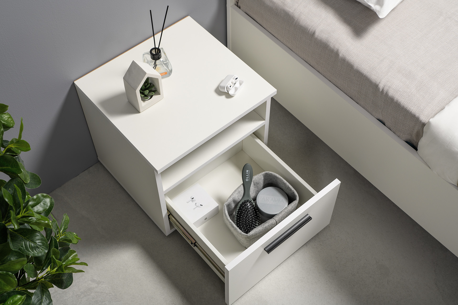 Стол журнальный, подставка Эйр 12.114 белый РЕ шагрень, вертикальная и горизонтальная установка