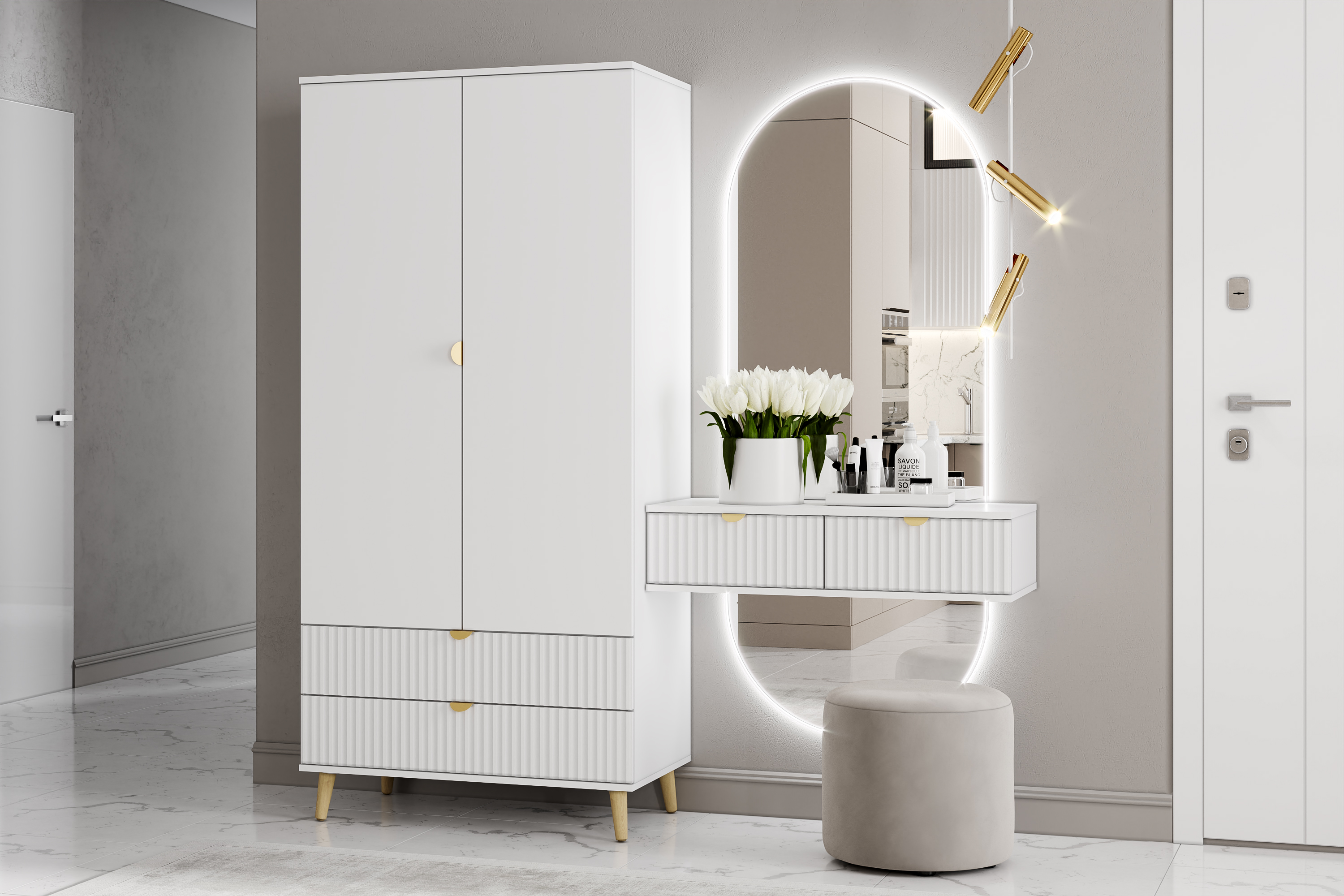 Тумба оснащена двумя выдвижными ящиками, которые открываются плавно и бесшумно благодаря шариковым направляющим.