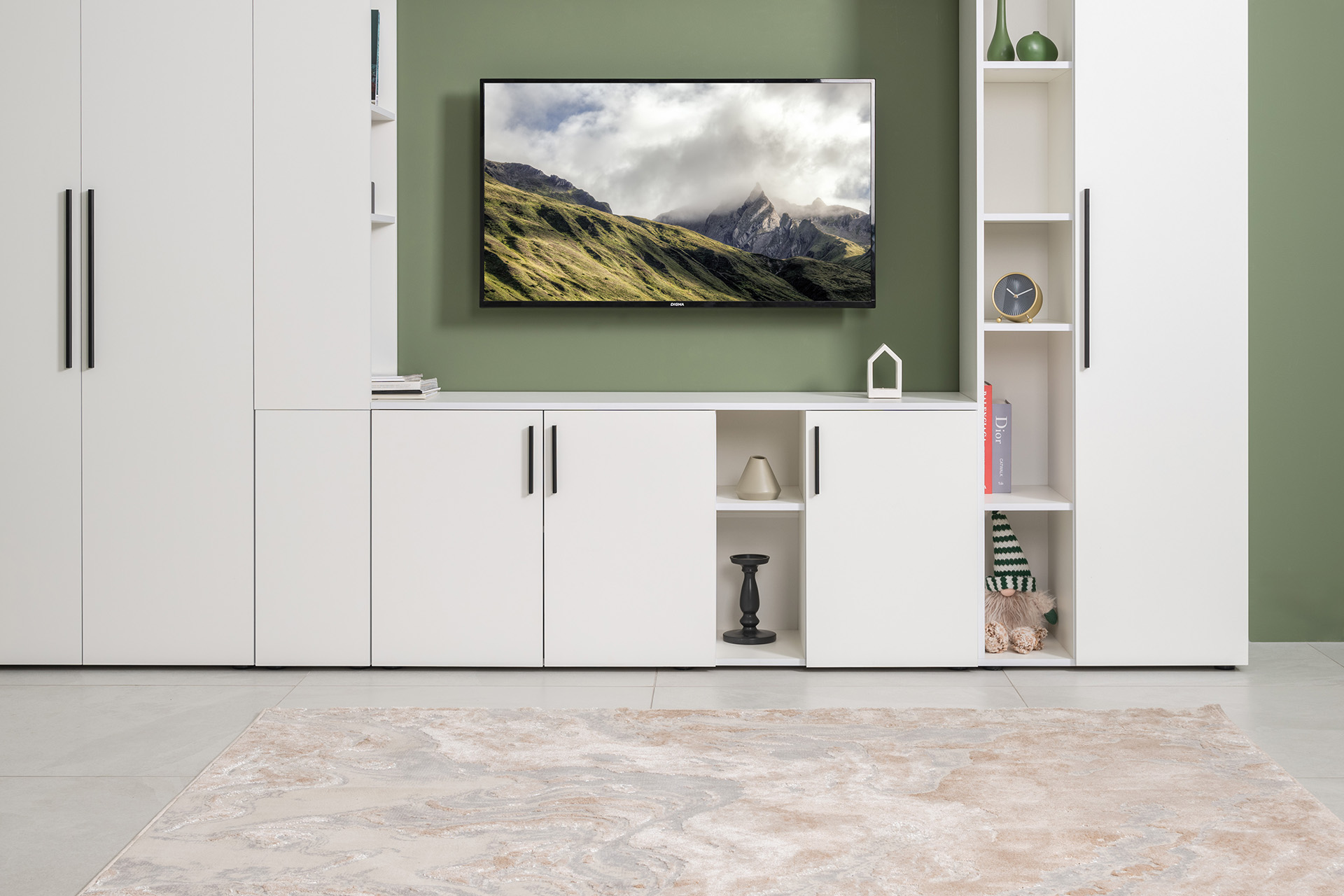 Тумба под ТВ в гостиную 13.267.03 белый PE шагрень, альберо, милк софт ПВХ