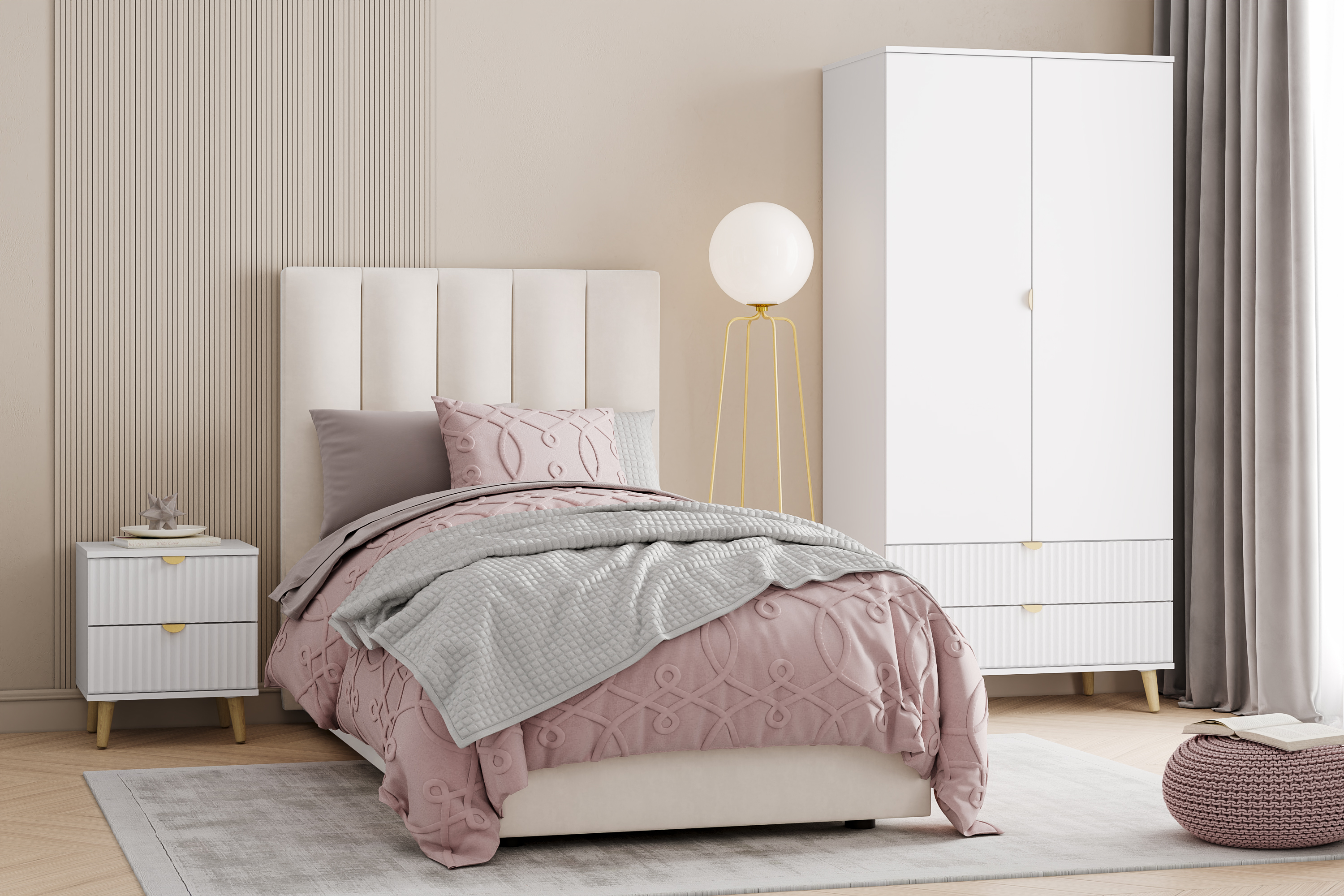 Прикроватная тумба оснащена двумя выдвижными ящиками, которые открываются плавно и бесшумно благодаря шариковым направляющим, а высокие опоры облегчают процесс уборки.